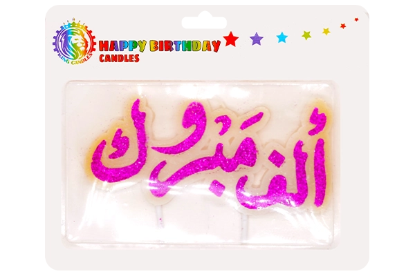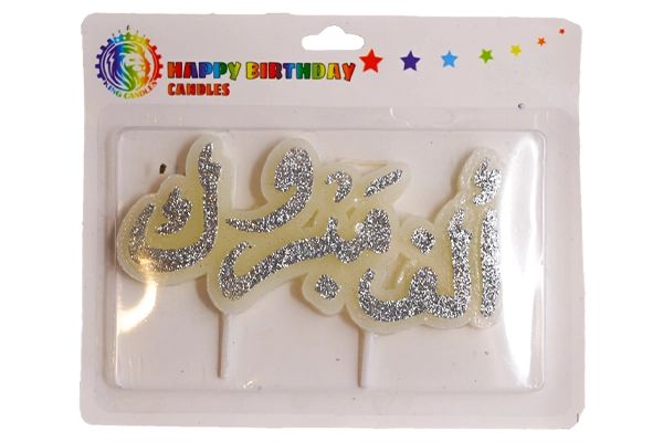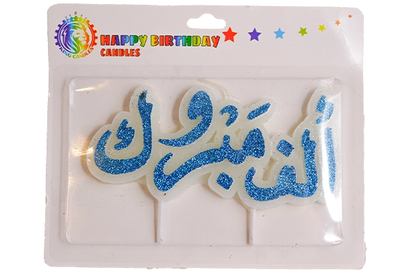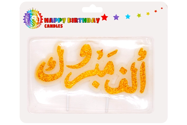 Our paraffin blend ensures a smooth, polished surface that holds the premium glitter evenly. Edges are refined to avoid snagging delicate frosting work. Under typical indoor conditions, the wick lights reliably and the flame remains steady, highlighting the engraved details of the alf mabrouk candle without excessive smoke. When the event is over, extinguish fully and lift the stands gently to protect the cake finish.