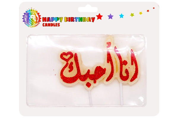 Say it beautifully with our ana uhibbuka candle—an elegant, Arabic-engraved centerpiece that turns cakes into heartfelt messages. Crafted from high-quality paraffin and finished with premium glitter, this statement candle spells “أنا أحبك” (I Love You) in crisp, legible letterforms. The shimmering surface catches ambient light for a luxe look that photographs wonderfully on minimalist cakes, cupcakes, and dessert tables at engagements, proposals, anniversaries, or any romantic celebration.