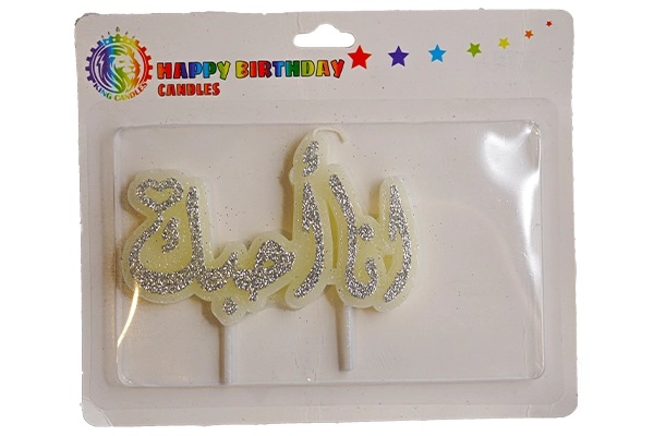 Our paraffin base supports a uniform coat that holds premium glitter evenly without flaking. Under typical indoor conditions, the wick lights reliably and maintains a steady flame, illuminating the engraved Arabic beautifully for photos and short-form video. After the celebration, simply extinguish, allow to cool, and lift away gently to protect delicate piping and sugar work.