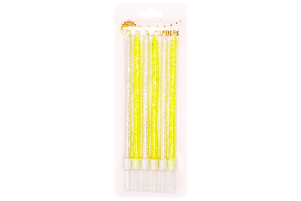 The even, full-coverage sequin finish catches ambient light from multiple angles, so your crystal glitter pencil candles shine beautifully under bakery cases, restaurant lighting, and smartphone cameras. With six harmonized hues, you can build gradients, monochrome statements, or mix-and-match bundles to fit any party theme.