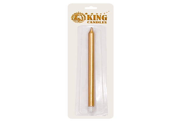 Meet the sleek showpiece your customers will reach for first: a full metallic birthday candle in an elegant single long pencil format. Crafted from quality paraffin and finished with high-grade metallic paint, it delivers a smooth, mirror-like sheen from tip to base. The elongated, slim silhouette adds dramatic height without crowding the cake surface—perfect for minimalist buttercream designs, fondant tiers, and boutique bakery displays where every detail must look premium on camera.