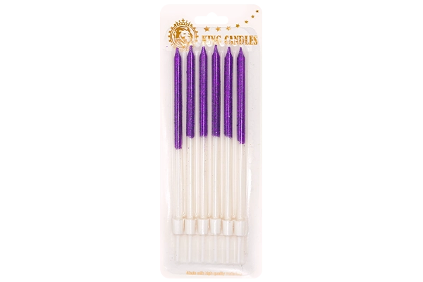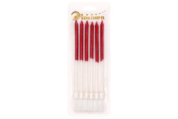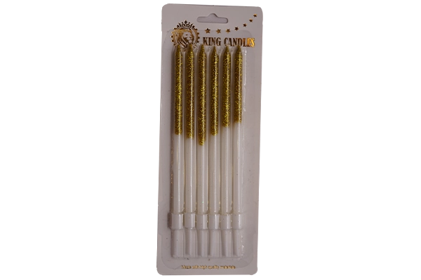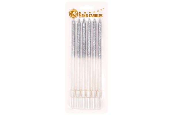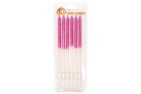 Contents: 6 pencil candles (glittered gradient finish)