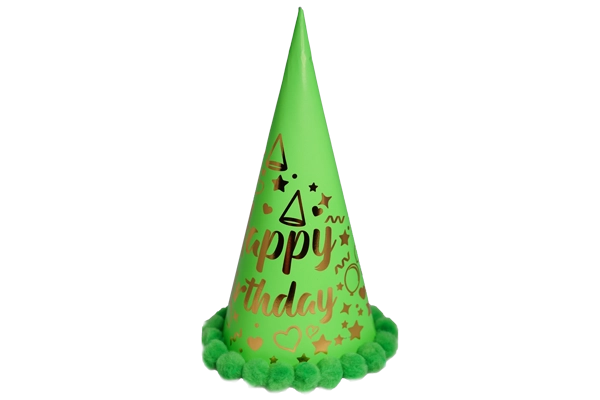 Keep the vibe chic and camera-ready with our matte reflective pom pom party hat, a tall cone hat crafted from premium matte reflective paper and topped with a soft cotton pom-pom. The satin, non-glare sheen photographs beautifully under party lights while staying comfortable for kids and adults at birthdays, school events, corporate parties, and photo booths.