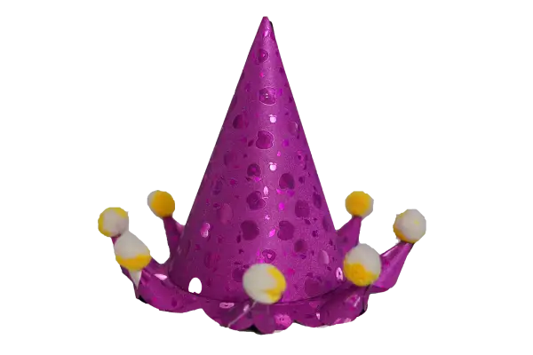 Bring joy and sparkle to your celebrations with the Medium Metallic Glossy Party Hat with Pom-Pom. Crafted from premium laser metallic paper and decorated with a fluffy cotton pom-pom, these hats are designed to shine under any light and create a cheerful party atmosphere.