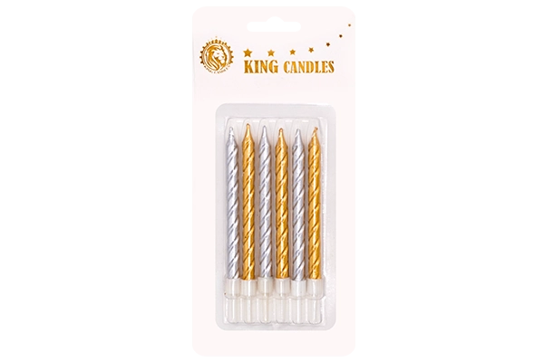 Our metallic coating lays down evenly over the spiral form for a glassy, flake-resistant finish. Wicks ignite cleanly and maintain a steady flame in typical indoor conditions, so cakes stay photo-ready from first reveal to candle-blowing. The twisted ridges amplify highlights and shadow lines, making these metallic spiral pencil candles read premium under bakery cases, event lighting, and smartphone cameras.