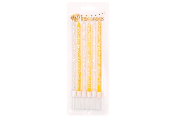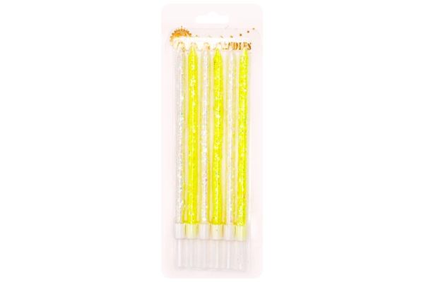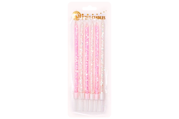 Bring a soft, shimmering glow to any setting with this 6-piece pencil candle set. Each candle is crafted from paraffin infused with fine pastel salt glitter for a delicate sparkle and a clean, even burn. Available in 7 charming colors, these lightweight candles are perfect for birthdays, table décor, photo styling, and thoughtful gifting.